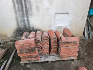 Lote de tejas árabes de arcilla, en buen estado para su reutilización. - Material: Arcilla. - Tipo: Árabe. - Estado: Buen estado. No se las q hay exactamente,estaban en un tejado de 6x7 metros,se regalan los canalones donde vertían si los quieren. Están en Cañamero.