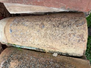 Lote de tejas árabes de terracota, ideales para tejados o proyectos de construcción. - Material: Terracota. - Estilo: Árabe. - Color: Rojo/Naranja con tonos verdes por el musgo.