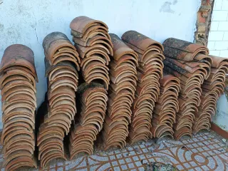 Se venden sueltas o en lote de tejas árabes antiguas, en buen estado de conservación. Habrán unas 2000 aproximadamente, suficientes para cubrir 80 metros cuadrados de cubierta. Unidad a 30 céntimos. Para mayor cantidad, consultar - Material: Cerámica. - Estilo: Árabe. - Color: Terracota.