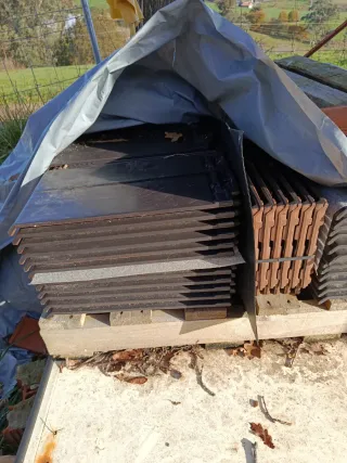 Tejas usadas para tejado, planas. Son de arcilla cocida y presentan un aspecto rústico. Ideales para restauración o proyectos DIY. - Material: arcilla. - Color: rojizo con variaciones de tono. - Envejecidas, con marcas del tiempo. Para más info hablar por privado.