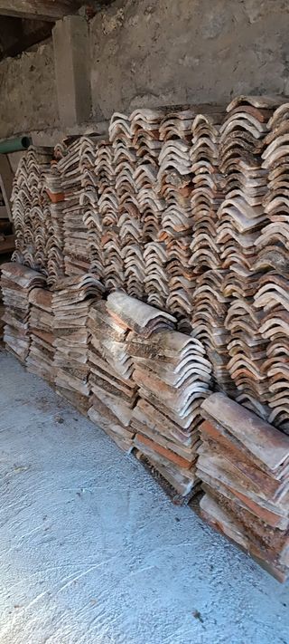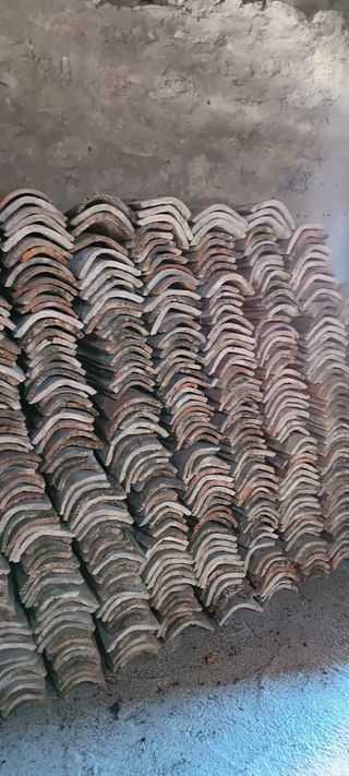 Se vende lote de tejas antiguas de barro cocido, en muy buen estado. Perfectas para restauración de tejados tradicionales, proyectos rústicos, decoración de jardines, muros, caminos o incluso como elemento decorativo en interiores. 🧱• Material: Barro cocido artesanal 👌• Estilo: Rústico, envejecido natural con pátina auténtica ✅• Estado: Buen estado Hay unas 2000 tejas en buen estado el precio por unidad es de 0’35 céntimos