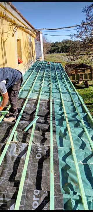 Hacemos tejados nuevos y viejos y retejes . Colocación de onduline bajo teja colocación de canalones y bajantes de todo tipo tambien limpieza de canalones y hacemos con fibra de vidrio y pintura cloro caucho , terrazas fachadas,aleros,laterales de tejados,