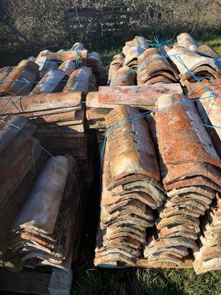 Vendo lote de tejas de cerámica curvas, perfectas para restaurar tejados o crear ambientes rústicos. Las tejas están en buen estado, pertenecen al sobrante de una reforma en una casa de pueblo. Se encuentran a 15 minutos de Burgos. Se pueden entregar tanto en Burgos capital como en alfoz. También envío a toda España, previo pago de portes. Precio a convenir según cantidad. Para unidades sueltas a 1€/unidad. Para lotes de más de 50 tejas a 0,20€/unidad. ¡No dudes en preguntar!