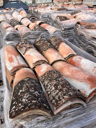 Tejas curvas estilo viejo, ideales para proyectos de restauración o construcción con un toque rústico. Se venden por palets. - Venta mínima 1 palet. - El palet tiene 200 unidades. - 0,75€ la unidad. - Tejas con acabado envejecido. - Tonos rojizos y ocres con pátina natural. - Perfectas para tejados tradicionales. Para más información consultar por chat.