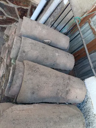 Tejas antiguas disponibles en Mojados, Valladolid. Cada teja tiene un precio de 0,2 €. - Piezas de construcción tradicionales. - Ideales para proyectos de restauración o decoración rústica.