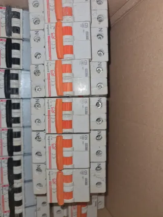 Interruptor automático de dos polos de la marca DELIXI, modelo DZ47 C32. - Intensidad nominal: 32A y 40A. - Tensión nominal: 400V~. - Frecuencia: 50/60Hz. - Cumple normativa IEC60898.