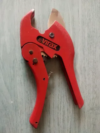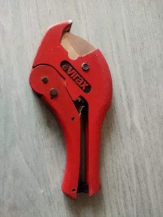 Herramienta para cortar tubos de PVC o plástico. - Mango de color rojo. - Cuchilla afilada para cortes limpios.