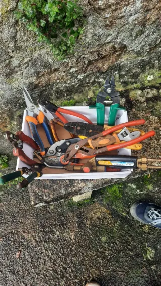 Se vende lote de herramientas variadas, ideal para reparaciones y trabajos manuales. - Alicates de diferentes tipos. - Tijeras de podar. - Llave inglesa. - Cortatubos. - Soplete pequeño.