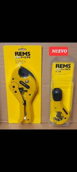 Se vende lote de tijera y cortatubos de la marca REMS, ambos nuevos. - Ref. 291000 RPS - ROS P42 PS: para tubos de Ø 42 mm, PVC, PE, PE-X, ABS, PP, PEu, etc. - Ref. 113350 R - REMS RAS Cu-INOX 3-35: para tubos de Ø 3-35 mm.