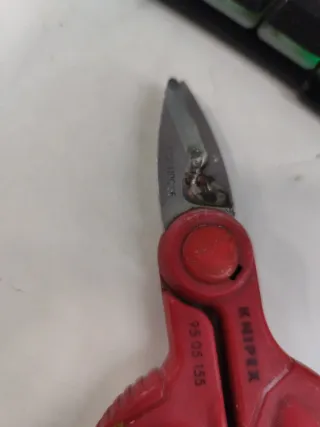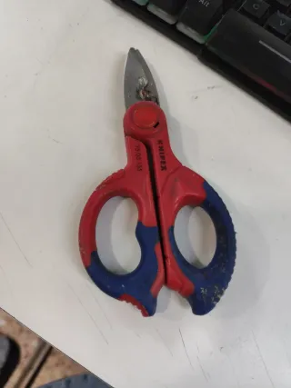 Tijeras de electricista de la marca Knipex. Ver estado. Lo ha dado todo de ahí si precio. - Modelo: 95 05 155 - Mango ergonómico bicolor (rojo y azul). - Hojas de acero inoxidable.