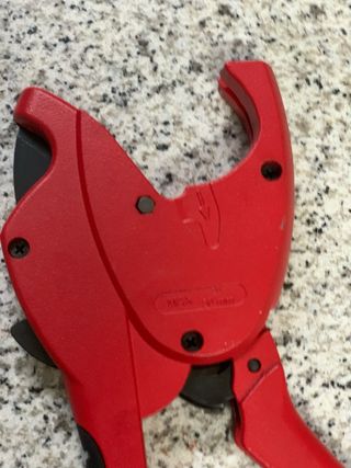 Herramienta para cortar tubos de PVC o plástico. - Mango de color rojo. - Cuchilla afilada para cortes limpios.