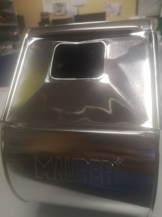 Se vende máquina manual para aplicar revestimientos de pared tipo tirolesa. Es de acero inoxidable y tiene un mango para facilitar su uso. Incluye un reductor para zonas pequeñas. - Ideal para aplicar materiales de revestimiento de pared tirolesa y rugosos. - Estructura de acero inoxidable. - Mango para un manejo sencillo. - Reductor para áreas pequeñas.