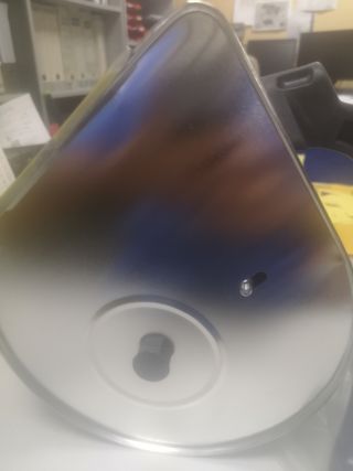Máquina para aplicar gotelé y tirolesa de la marca Lolita. - Cuerpo metálico. - Mango de plástico amarillo. - Salida de material de plástico amarillo.
