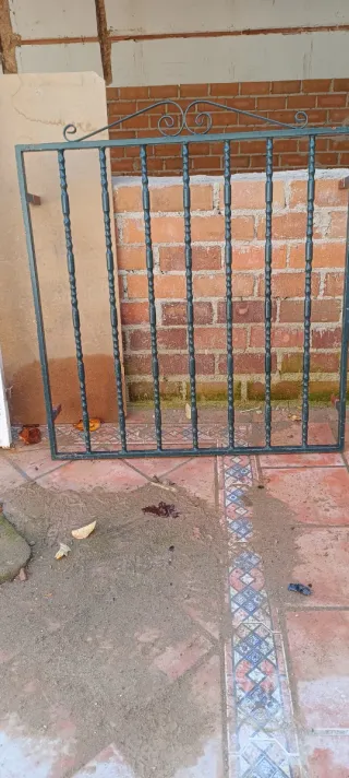 Juego de rejas para ventanas con un diseño clásico y elegante. Perfectas para añadir seguridad y un toque decorativo a tu hogar. - Medidas: 1.15 metros de alto por 1.15 metros de ancho. - Material: Metal resistente con acabado oscuro. - Diseño: Barras verticales con detalles ornamentales en la parte superior.