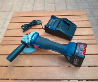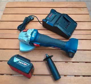 Amoladora Bosch GWS 18V-8 Gama o serie azul profesional professional. Radial angular, rebarbadora, lijadora, marranillo, esmeriladora, rotaflex... de 125 de diámetro de disco. Completa: Amoladora, Cargador y Bateria de 4.0 Ah A0101Y95C
