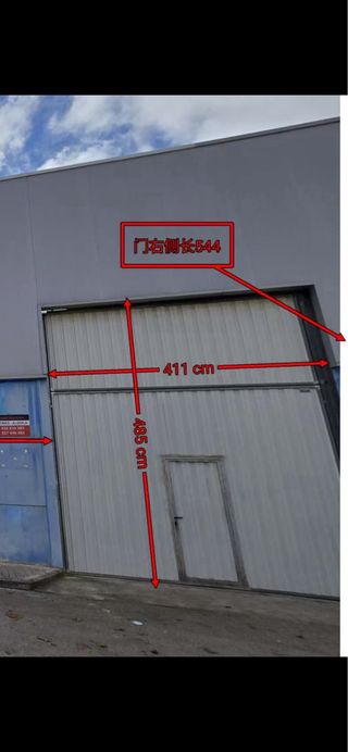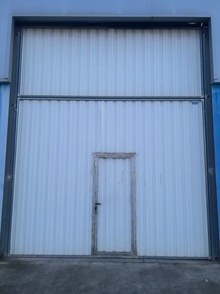 Puerta metálica para nave industrial. Diseñada para ser robusta y funcional. - Material: Metal - Color: Blanco - Incluye marco y puerta peatonal.