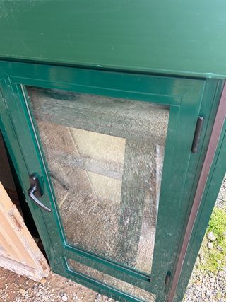 Ventana de aluminio con persiana corredera. - Marco de aluminio en color verde. - Doble cristal. - Persiana enrollable integrada. - se dispone de 3 unidades correderas y una abatible pequeña con persiana y otra abatible sin persiana - medidas 1,15 de largo por 1,32 de alto dos unidades, 1,57 de alto por 1,60 de alto una unidad y la pequeña 73 de ancho por 1,53 de alto y la otra sin persiana 1,10 de alto por 66 cm de ancho - preguntar precio