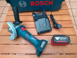 Se vende amoladora angular Bosch Professional a batería. - Incluye amoladora, cargador, batería 18V 4.0Ah y disco. - Mango auxiliar. - Maletín de transporte.