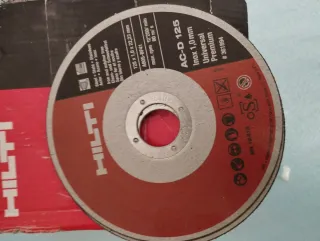 Discos de corte Hilti AC-D 125 para Inox. Modelo Universal Premium. - Diámetro: 125 mm - Grosor: 1,0 mm - Eje: 22,23 mm - Velocidad máxima: 12.250 rpm / 80 m/s - Libres de hierro y azufre. - Referencia: #361894