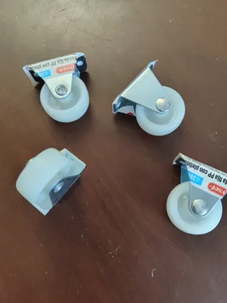 Set de cuatro ruedas giratorias de la marca Liyset, con un diámetro de 38mm. - Ruedas fijas con pletina. - Fabricadas en PP (polipropileno). - Ideales para muebles o carritos. Nuevo a estrenar