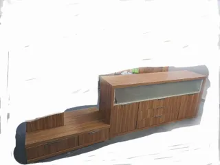 -Muebles de salón de color oscuro. -En buen estado. -La medida del conjunto de largo es: 294'5cm. -Medidas Mueble tv son: Largo: 188cm Altura: 84'5cm Fondo:45cm - Medida Mueble bajo son: Largo: 106'5cm Altura: 25cm Fondo: 60'5cm