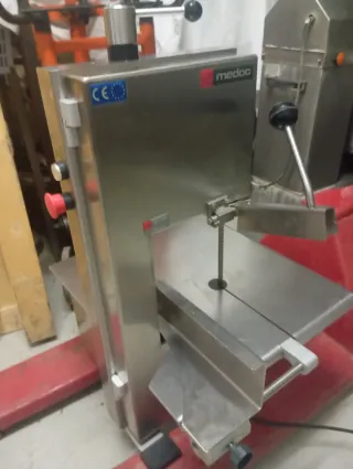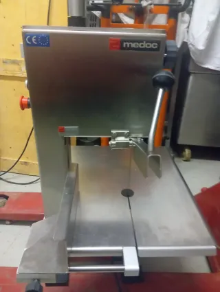 Sierra de huesos profesional de la marca Medoc, ideal para carnicerías o cocinas industriales. Fabricada en acero inoxidable para mayor durabilidad e higiene. - Diseño robusto y compacto. - Superficie de corte amplia. - Cumple con normativas CE.