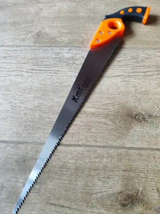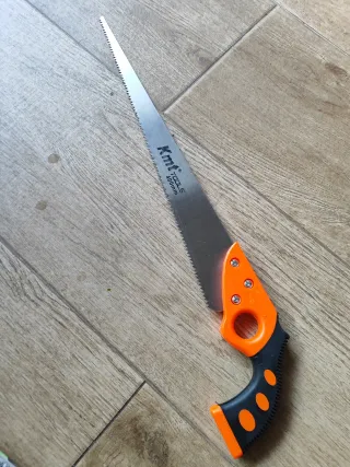 Sierra de mano KMT TOOLS de 400mm, ideal para trabajos de carpintería o jardinería. Mango ergonómico para un agarre cómodo. - Hoja de acero. - Mango de plástico naranja y negro. Nuevo a estrenar Puedes mirar en mi perfil mas ofertas gracias