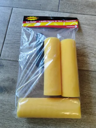 Set de rodillo para pintar, ideal para trabajos de bricolaje y decoración. Incluye un rodillo de espuma y dos recambios. - Rodillo de espuma de 18 cm. - Dos recambios adicionales. - Mango ergonómico. Nuevo a estrenar
