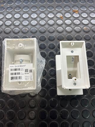 Soporte modelo CA-1W de Optex, diseñado para detectores de exterior. Fabricado en China. - Modelo: CA-1W BRACKET - Código: 08720 - Lote: 2139H - Fabricante: OPTEX CO., LTD - Origen: Diseñado en Japón para detectores LX-402/802N 2 U se venden juntas