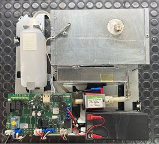 Generador de niebla Nebbiogeno modelo DT 400. 2 - Diseño blanco con textura. - Etiqueta con logo de Defendertech. En perfecto estado, solo ha sido utilizado en exposición y con muy pocos disparos Nunca he estado instalado incluye botella de recambio de fluido de niebla de litro y medio Y botella de recambio de niebla de medio litro total 2 l de líquido 24V ideal para instalaciones en sistemas de seguridad Genera 415 m³ de niebla en 60 segundos Salida 12 V, 500 mA para periféricos externos Volumen total de disparo, 1870 m³