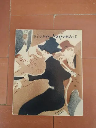 Azulejo decorativo con la icónica obra Divan Japonais de Henri de Toulouse-Lautrec. - Diseño artístico. - Tonos marrones y negros. Medidas 25x22'2 cm.