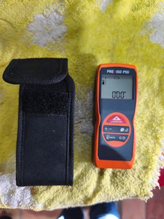 Medidor láser PREXISO P50 en color naranja y negro. Incluye funda protectora. de buena calidad se probo y nunca se ha usado - Pantalla digital. - Botones de control. - Indicador de batería.