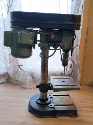 HOLA SE VENDE TALADRO DE COLUMNA FUNCIONA PERFECTAMENTE COMO NOEVA ALTURA 60SM Y PESA 20 KILOS PORTABROCA 12 EMBIO A TODA ESPANIA PRECIO ALGO NEGOCIABLE (REPITO ALGO)Taladro de columna en color verde y negro. - Base metálica. - Columna de soporte. - Mesa de trabajo ajustable. - Interruptor de encendido/apagado.