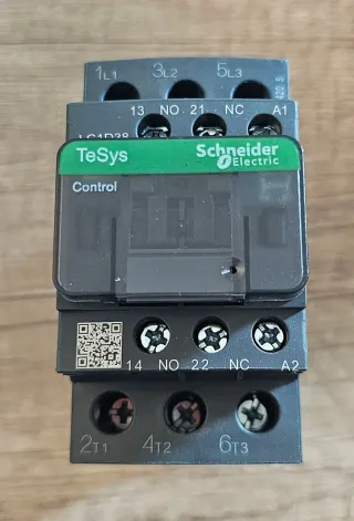 Contactor de CA Schneider Electric modelo LC1-D38Q7C. - Serie TeSys. - Control. - Terminales de potencia: 1L1, 3L2, 5L3, 2T1, 4T2, 6T3. - Contactos auxiliares: 13 NO, 21 NO, 14 NO, 22 NC. - Bobina: A1, A2. Precio de la unidad 40€. Si quieres las 6 unidades haz oferta.
