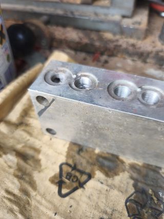 Bloque de aluminio para válvulas hidráulicas con múltiples orificios. 10 conectores de 3/8 nuevo - Material: Aluminio. - Diseño con múltiples orificios para montaje de válvulas.