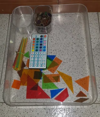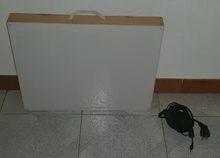 Mesa de luz con marco de madera y asa para transporte. Ideal para calcar o dibujar. - Superficie blanca. - Marco de madera. - Asa de cuerda.