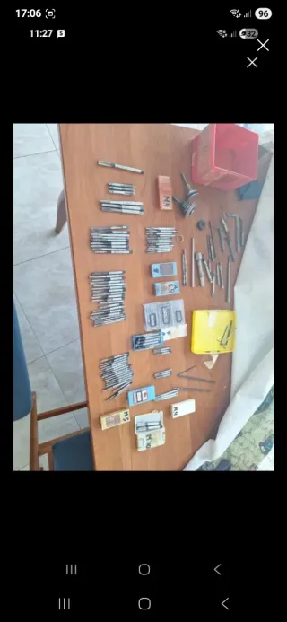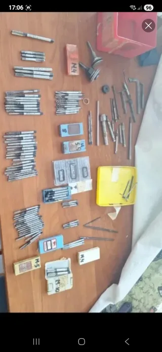 Lote de herramientas variadas, incluyendo machos de roscar y brocas. - Machos de roscar M4, M5, M10. - Brocas de diferentes tamaños. - Accesorios para herramientas.