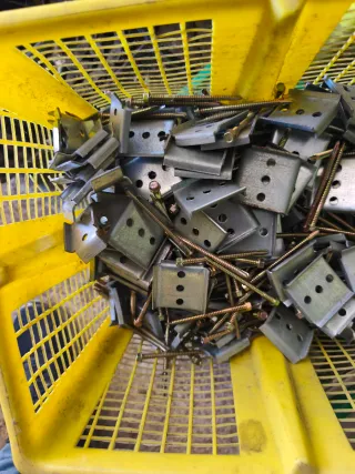 Lote de tornillos y tacos metálicos para fijaciones. Más de 100 unidades - Piezas de metal con rosca. - Incluye tacos de sujeción.