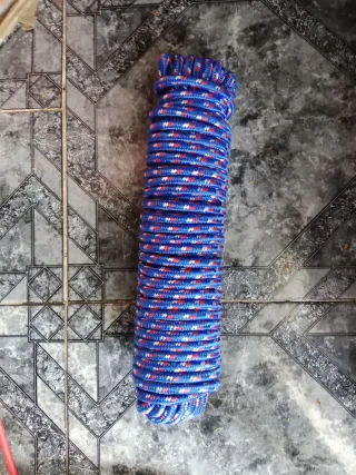 Cuerda nueva sin estrenar, ideal para múltiples usos. - Color: azul con detalles rojos y blancos. - Longitud: 30 metros.