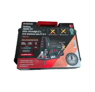 Sierra de calar Parkside 12V, modelo PSTKA 12 B3. Se vende la unidad sin batería ni cargador. - Control de potencia constante. - Suministro de energía automático. - 2 niveles de carrera pendular. Ajuste fino.