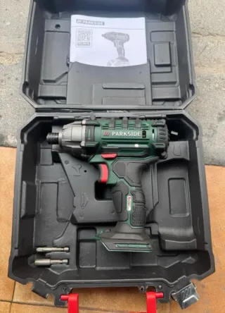 Atornillador de impacto recargable Parkside PDSSA 20-LI A1. - Sin batería ni cargador. - Compatible con baterías Parkside X 20 V Team. - Par máximo: 180 Nm. - Velocidad de giro en vacío: 0-2800 rpm. - Número de percusiones: 0-3600 min-¹. - Incluye adaptador cuadrado de 1/4 y prolongador para bit de 50 mm.