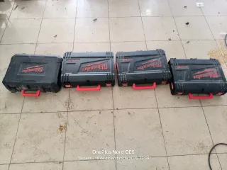 Se venden cuatro maletines de la marca Milwaukee. O cambio por un baúl grande milwauke - Maletines de plástico resistente. - Color negro con detalles en rojo. - Asas plegables para un fácil transporte.