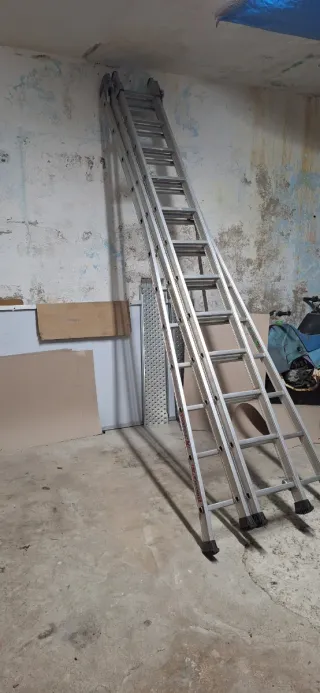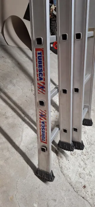Escalera profesional de la marca Tubesca, ideal para trabajos en altura. Fabricada en aluminio resistente. Tres tramos, está como nueva. - Material: Aluminio. - Tipo: Profesional.