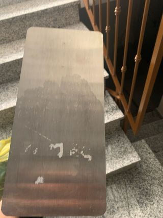 8 Tablones de madera , son tablas de baranda de un edificio antiguo, con sus cogidas Se ponen dos por subida - Madera de pino natural. -Va sobre soportes de hierro Con algún rasguño q otro