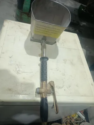 Herramienta para aplicar revoque con aire a presión. Le falta una asa - Fabricada en metal y latón. - Mango ergonómico. - Palanca de control.