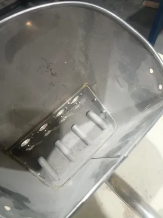 Caja de camión tipo multilift Para repasar zonas bajas laterales picadas y con roturas - Construcción robusta de metal. - Pintura verde y azul desgastada. - Presenta signos de óxido. Largo 3,86 Altura 1,50 Ancho 2,10 Vigas de 94 interior Vigas de exterior 1,05 Vigas 5