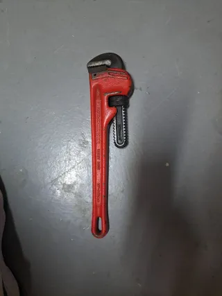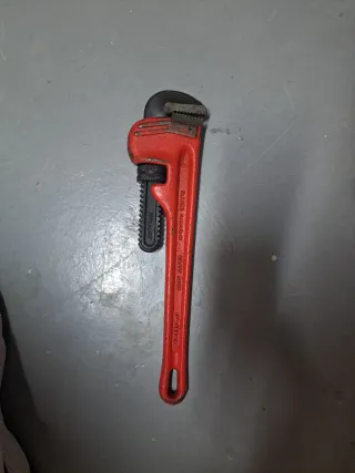 Llave de fontanero de color rojo, una herramienta esencial para trabajos de tuberías. -marca Rothenberger made in spain - Cuerpo de metal robusto. - Mandíbula ajustable para diferentes tamaños de tubería. - Mango con orificio para colgar.