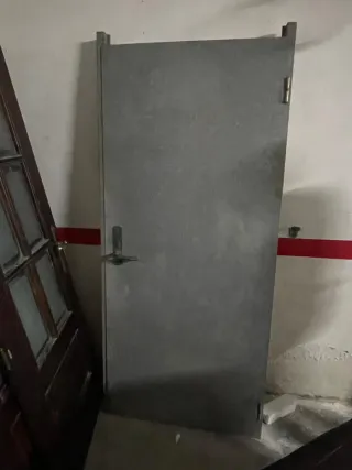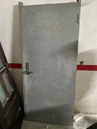 Puerta metálica completa con su marco y juego de llaves. - Material: Metal. - Incluye marco. - Se incluyen llaves. Medidas: 90 de ancho con el marco El marco es de 4 cm de grosor. Y 2 m de alta
