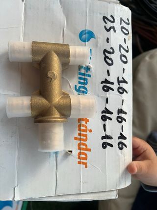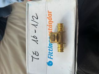 Caja de fontanería con un accesorio en T. - Accesorio en T de latón. - Medida 16-1/2. Va por separado o por lotes