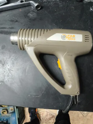 Pistola de calor marca FAR TOOLS, modelo HGGW 1500C. - Temperatura regulable entre 300 y 500 °C. - Caudal de aire de 280 a 480 l/min. - Dos posiciones de calor. - Dos velocidades de flujo de aire.